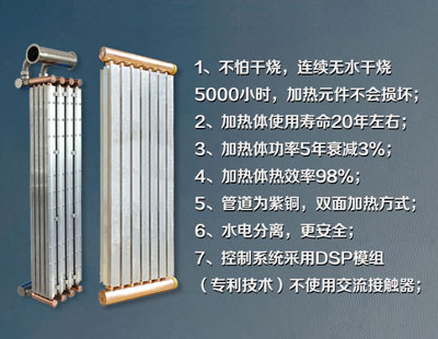 成功研發(fā)升級至第六代全新智能沈陽全導(dǎo)體電鍋爐機(jī)組。產(chǎn)品采用全導(dǎo)體加熱變頻技術(shù),節(jié)能設(shè)計,熱效率高達(dá)98%以上,水電分離,獨有的故障自檢,防凍防干燒等十大保護(hù);不使用交流接觸器,采用DSP控制模組、工作無聲音,不怕潮濕;采用國內(nèi)正泰原裝配件,穩(wěn)定耐用,智能控制,功率衰減小,比傳統(tǒng)沈陽電鍋爐節(jié)能30%以上“公司能夠生產(chǎn)單機(jī)500-6000千瓦大型電鍋爐、大功率電鍋爐、大型工業(yè)電鍋爐、大型電加熱鍋爐”